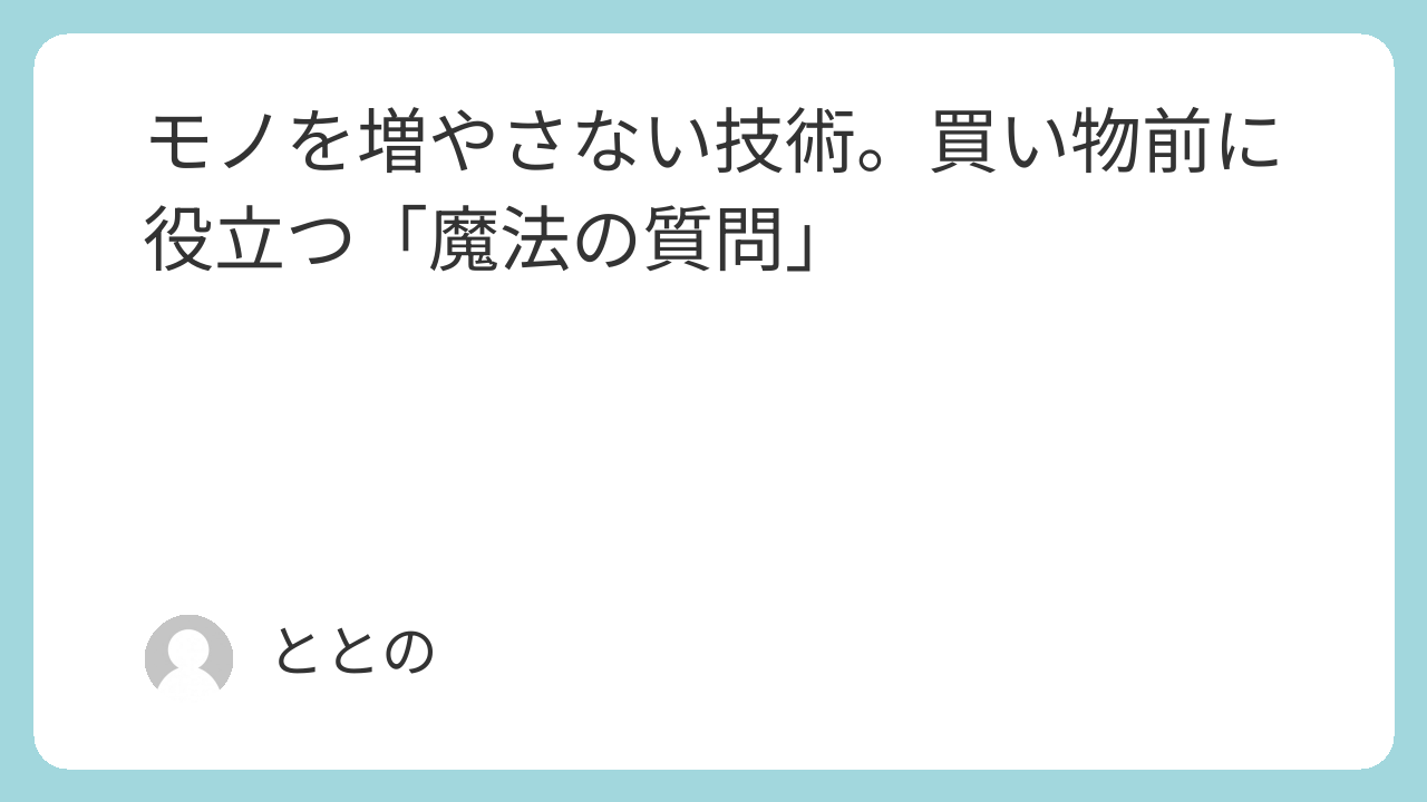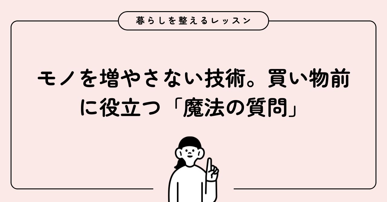 今回は、モノを増やさないための技術として、買い物前の「魔法の質問」と、衝動買いを防ぐ具体的なアクションをご紹介しました。
