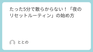 習慣とマインド たった5分で散らからない!「夜のリセットルーティン」の始め方 せっかく時間をかけて部屋を片付けたのに、数日経つと、なぜかまた元の散らかった状態に…。そんな「リバウンド」に悩んでいませんか?そして、「片付けは、週末にまとめてやるもの」だと思い込んで、平日は見て見ぬふりをしているうちに、どんどん手が付けら... 習慣とマインド
